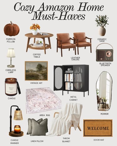 There’s something magical about a cozy, well-styled home — and this season, I’ve rounded up my favorite Cozy Amazon Home Must-Haves to help you create that warm, inviting space you’ll never want to leave. From fall home decor ideas and farmhouse living room inspiration to earthy cottage home accents and vintage Amazon finds, these pieces are perfect for bringing comfort and charm into every corner of your home.